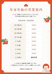 お知らせ2025.12.24年末年始のお知らせ